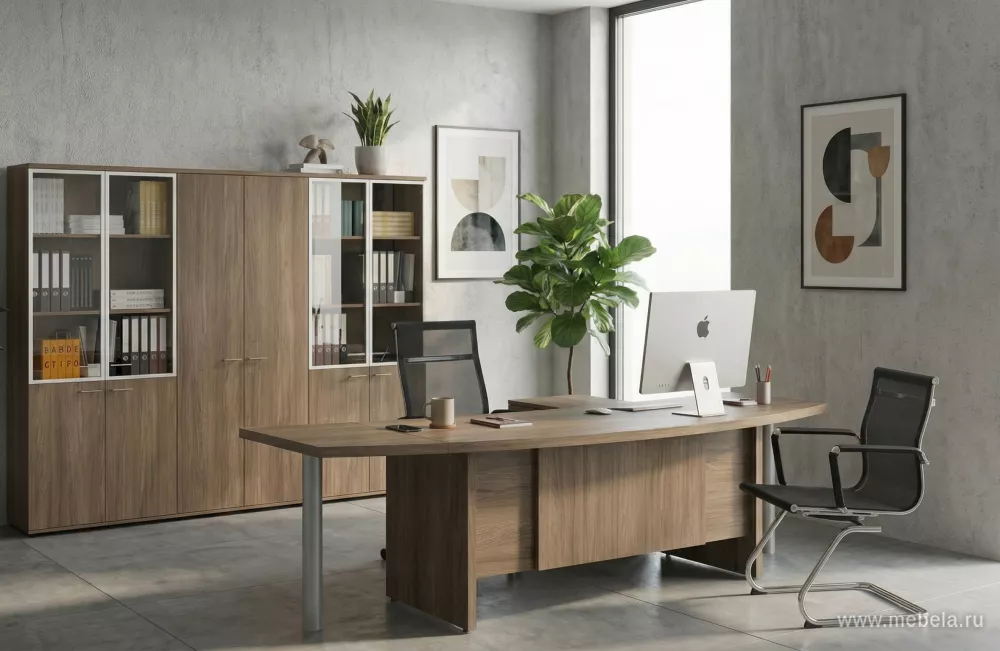 Солидный и эффектный комплект мебели Винг Дуб темный (Wing), в которой скандинавские мотивы гармонично соединены с изысканными и лаконичными формами. Уникальная по форме просторная столешница заокругленная с одной стороны, подчеркивает строгие лаконичные линии шкафов и тумб и отражает современные взгляды на офисную мебель....